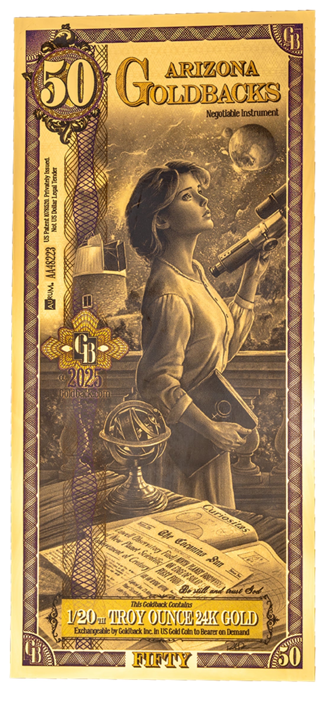 The Arizona 50 Goldback honors this landmark achievement by personifying the virtue of