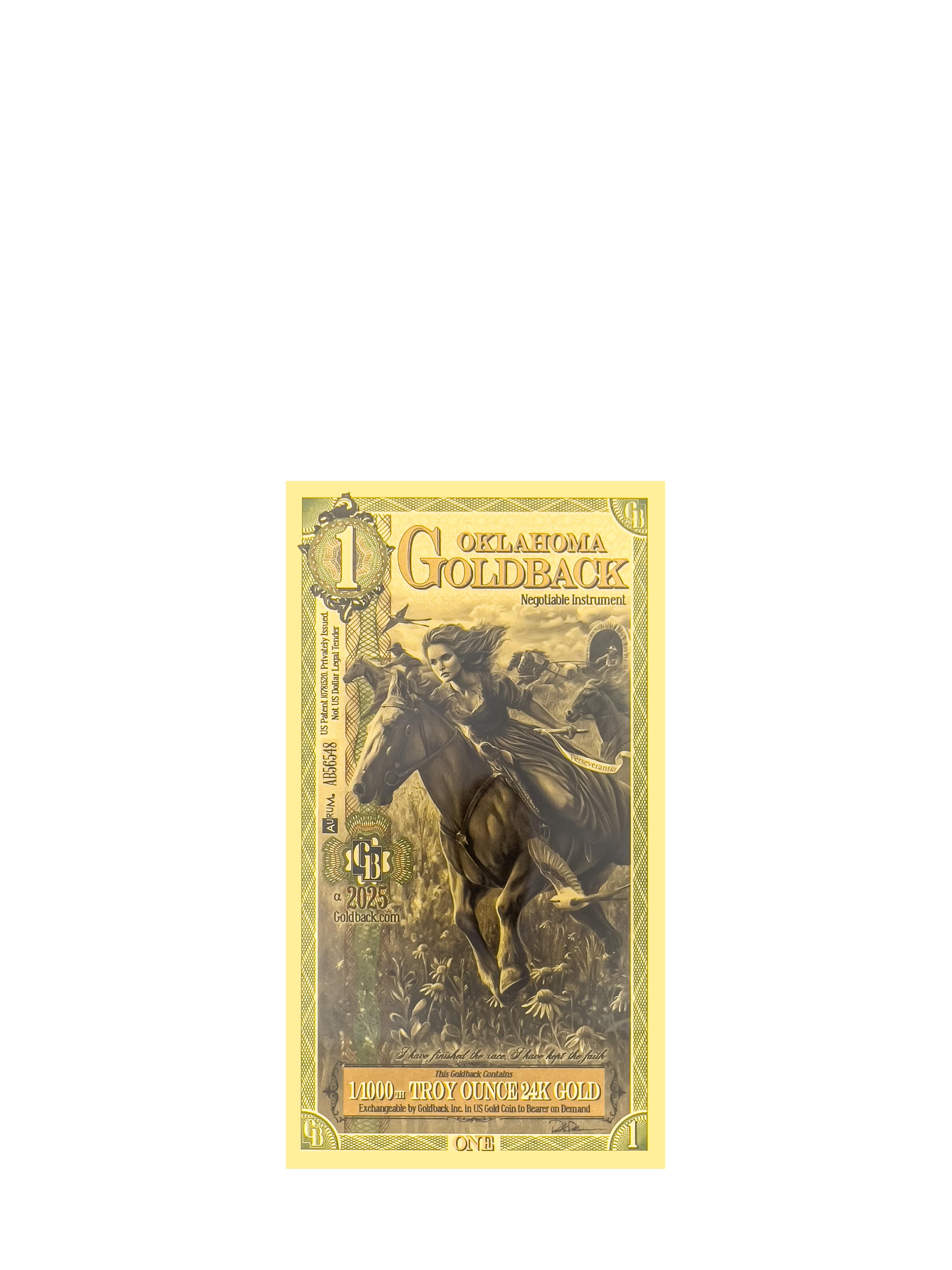 Oklahoma Alpa Starter Pack 25 Goldbacks in gift envelope